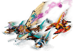 O catamarã de batalha dos Guardiõs tem 2 disparadores com mola e pode se dividir em 3 barcos separados, um com uma mini prisão para os ninjas, e um com 2 atiradores de pinos e um cofre de diamantes