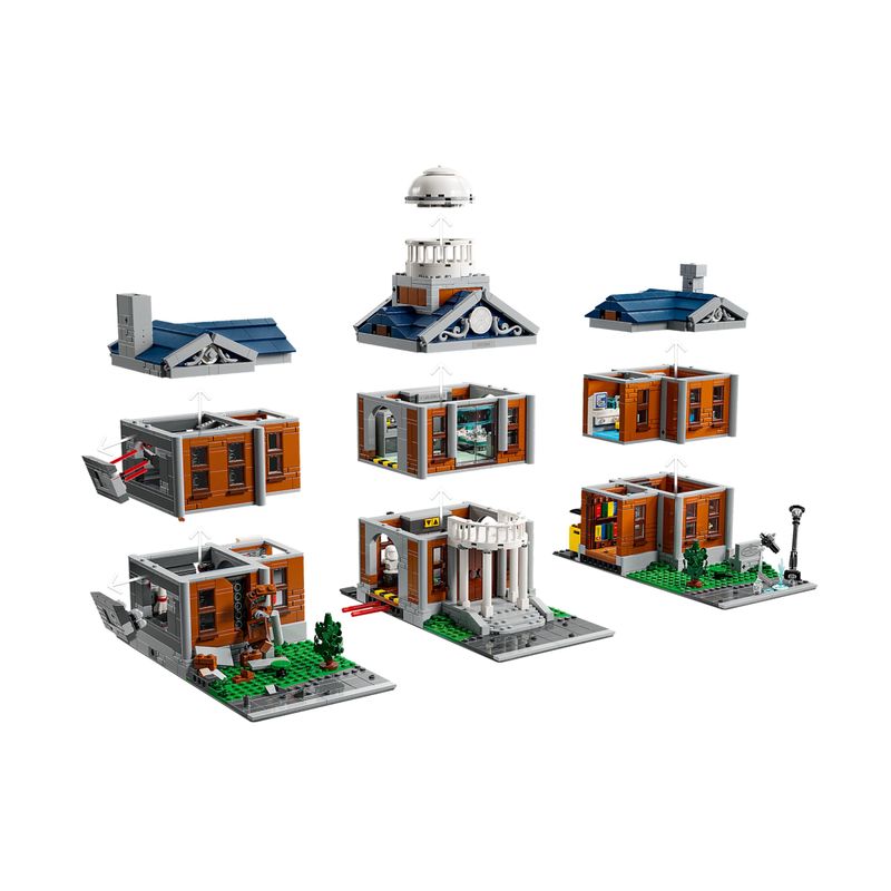 Marvel X-Men: The X-Mansion é um modelo detalhado da escola do Professor Xavier, com 3093 peças e 10 minifiguras icônicas Inclui ambientes clássicos como laboratório, biblioteca e Danger Room, além de uma figura montável do Sentinela
