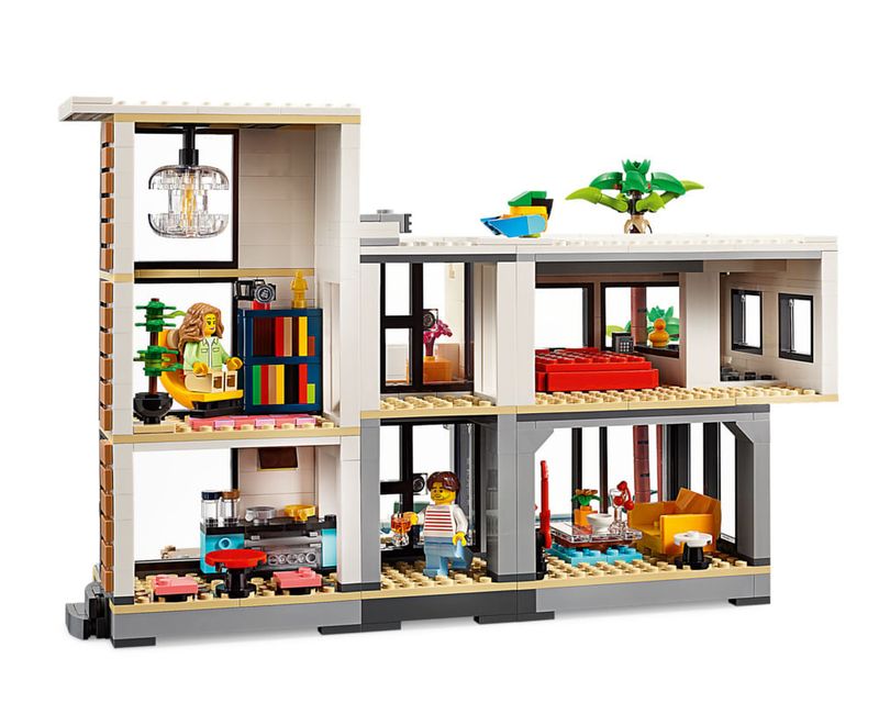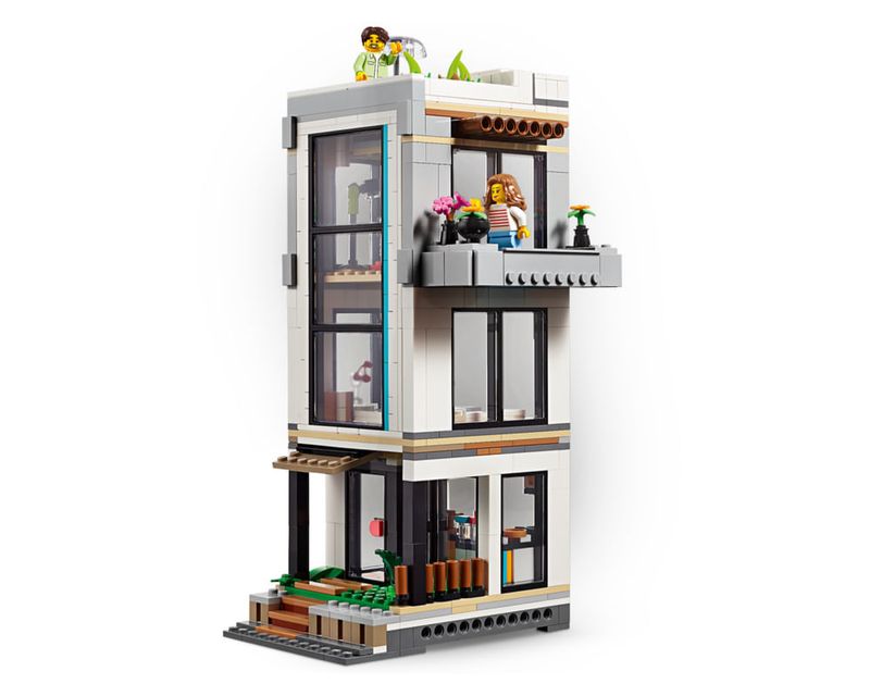 Este conjunto de construção LEGO oferece um mundo de possibilidades com 3 modelos de casas diferentes para construir usando o mesmo conjunto de peças As crianças podem criar uma casa moderna, reconstruí-la em um elegante edifício urbano de 3 andares com banheira de hidromassagem e terraço na cobertura ou transformá-la em uma cabana na floresta A Casa Moderna e o edifício urbano de 3 andares dão acesso aos quartos pela parte de trás, enquanto a cabana na floresta tem um telhado aberto
