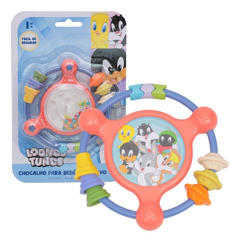 Encante e estimule seu bebê com o Chocalho Looney Tunes Interativo! Inspirado nos personagens adorados dos Looney Tunes, esse chocalho colorido e divertido foi desenvolvido especialmente para as mãozinhas pequenas Leve e fácil de segurar, ele ajuda no desenvolvimento da coordenação motora, percepção sonora e visual