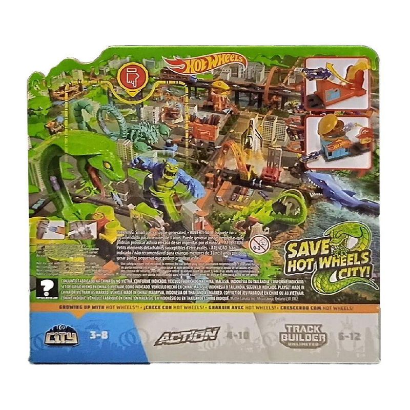 Viva muitas aventuras e faça manobras radicais com este incrível conjunto Hot Wheels As crianças podem explorar o Hot Wheels City usando seus carrinhos Hot Wheels Cada conjunto se conecta diretamente a outros conjuntos Hot Wheels City, com o novo sistema de conexão, compatível tanto com as pistas de Hot Wheels City (em tonalidade grafite), quanto as pistas laranjas e amarelas