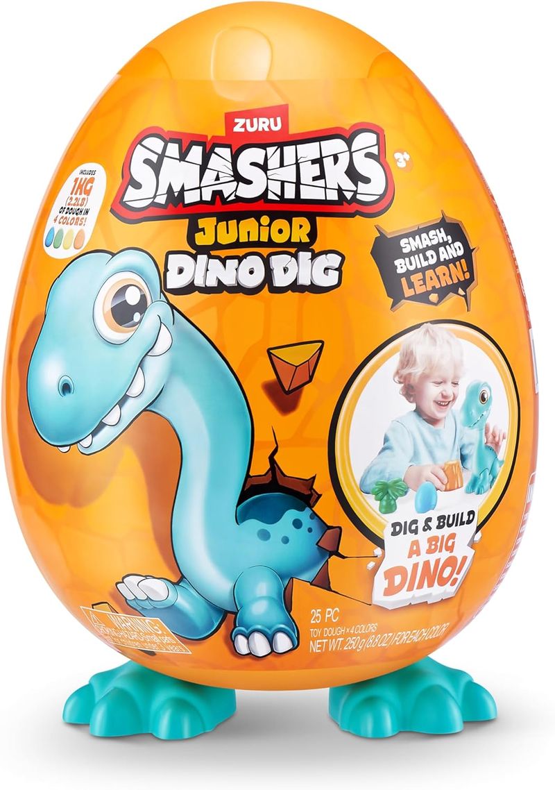 O Smashers Junior Dino Dig - Série 1 Grande é um brinquedo em formato de ovo surpresa ideal para crianças que gostam de dinossauros e atividades interativas Contém mais de 25 surpresas, incluindo miniaturas exclusivas de dinossauros, massinha, adesivos e acessórios temáticos Proporciona uma experiência divertida de escavação, estimulando a curiosidade, a criatividade e o aprendizado sobre dinossauros É uma excelente opção de presente para diversas ocasiões, oferecendo horas de diversão e imaginação